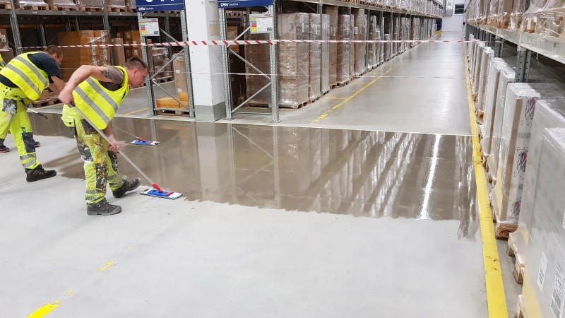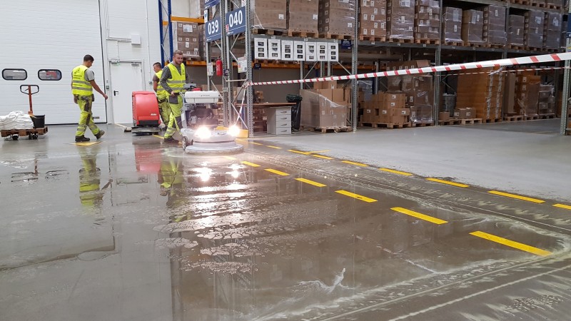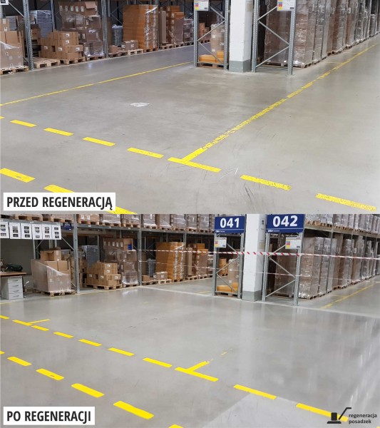 Gruntowne doczyszczanie i impregnacja posadzki betonowej na hali magazynowej firmy DSV Solutions Sp. z o.o.